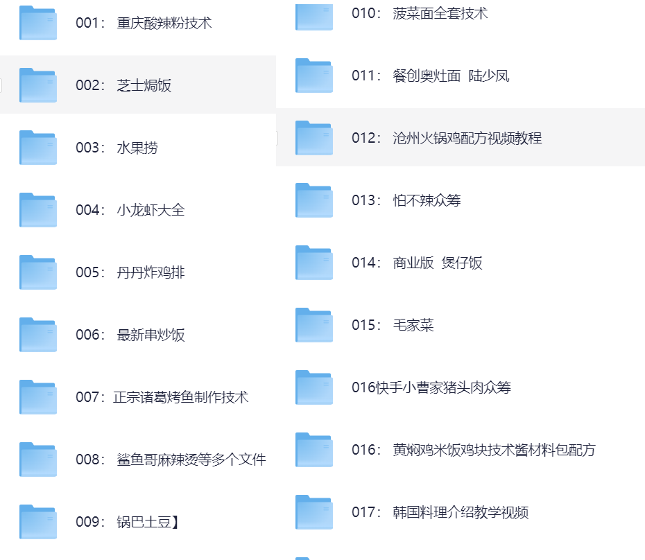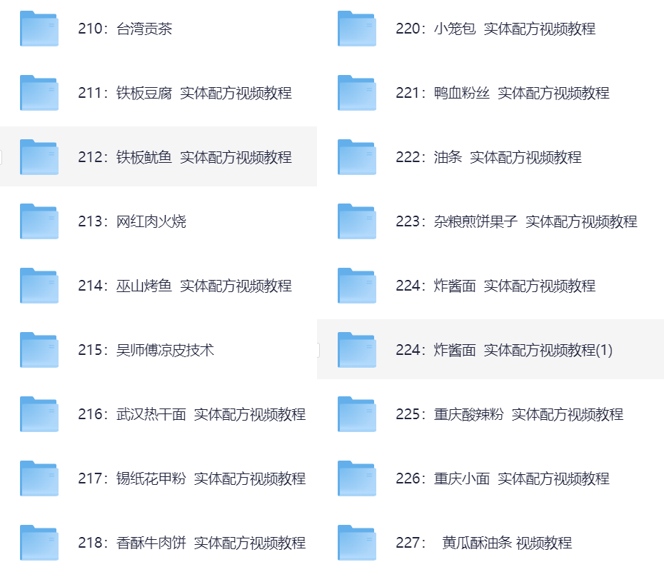 一共有几百个G,相当全面,可以说包含你所吃过的、见过的、听过的任何一个小吃,非常详细的教你如何制作,就算什么都不会,学完以后也能当个大厨,偷偷学一下,然后惊艳所有人不好吗?